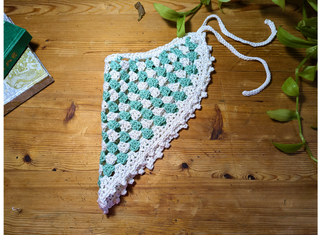 Ajoutez une touche bohème, féerique ou estivale à votre tenue avec ce bandana en crochet, entièrement réalisé à la main. Léger, doux et confortable à porter, il peut se nouer autour de la tête, sur les cheveux ou même en foulard autour du cou.