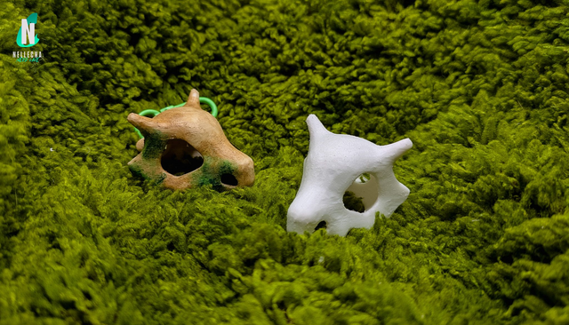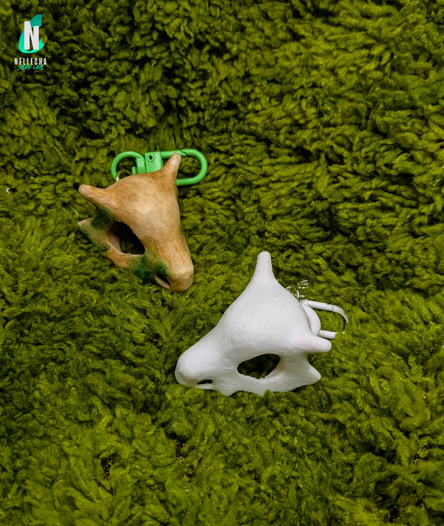 Des porte-clés uniques représentant les crânes de Pokémon, imprimés en 3D et peints à la main pour un rendu réaliste et vieilli.