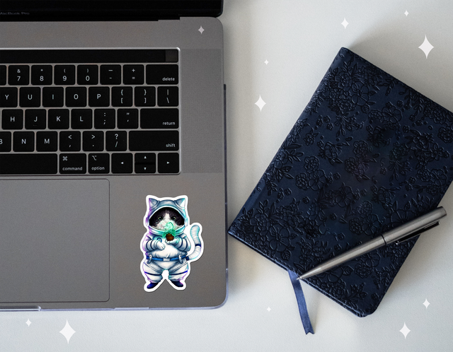 Gaïa, le petit chat explorateur en combinaison spatiale, est prête à parcourir la galaxie à la recherche de mystères cosmiques 🪐