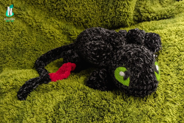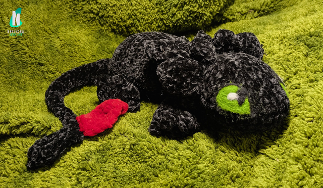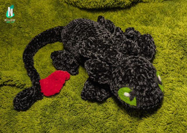 Les yeux réalisés en feutrage à l’aiguille ajoutent une touche d’authenticité et de douceur à ce dragon emblématique.