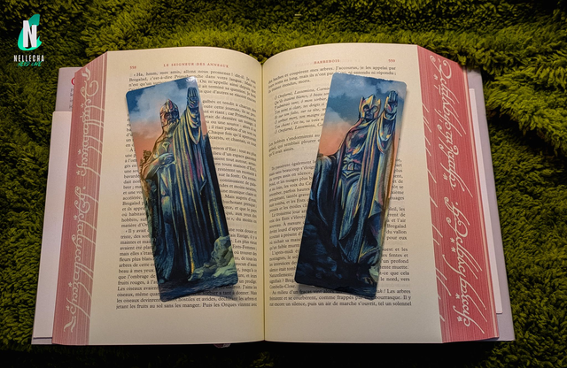 Chaque côté du marque-page présente l’un des deux rois, Isildur et Anárion, figés dans la pierre et veillant silencieusement sur vos lectures.
