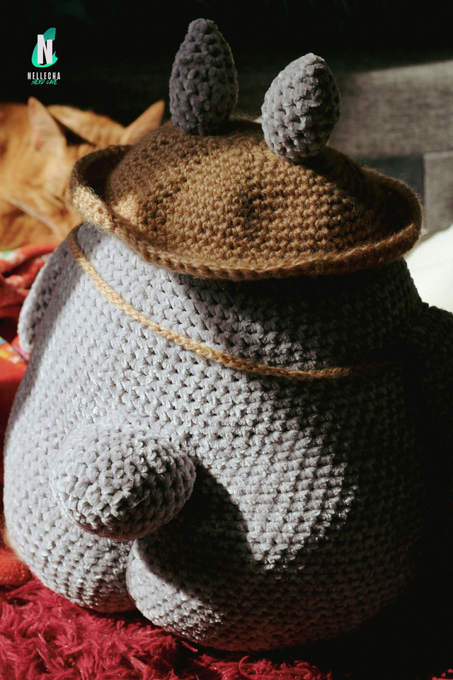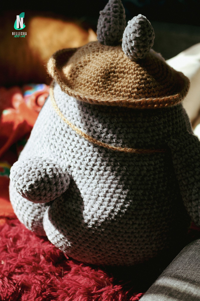 Découvrez Totoro revisité en crochet. Avec sa laine chenille ultra-douce, son chapeau fleuri, sa petite sacoche… et ses magnifiques fesses ! Parfait pour les fans de Ghibli, une déco unique ou un cadeau tendre.